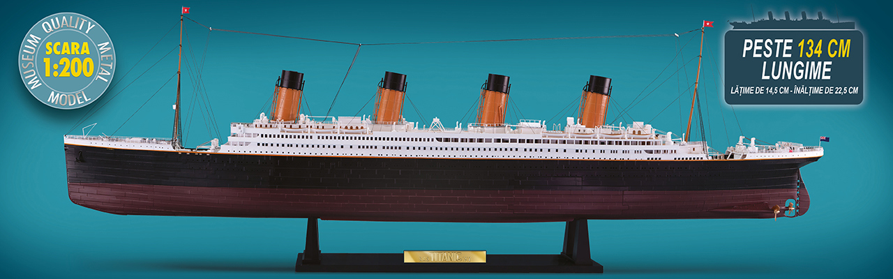 Povestea Titanicului nu este doar povestea celei mai luxoase, celebrate și rememorate nave de pasageri din toate timpurile. Este, totodată, povestea seducătoare a unei epoci „efervescente” de inovații tehnologice sclipitoare și de excepție. Ne îmbarcăm literalmente la bordul său pentru a-i descoperi toate detaliile de construcție, începând de la sălile mașinilor până la saloanele somptuoase, de la mobilierul interior al cabinelor până la dotările tehnice ale punții. O capodoperă a modelismului maritim, care poate fi admirată în cel mai mic detaliu de construcție și estetică, de un realism și o perfecțiune absolute.